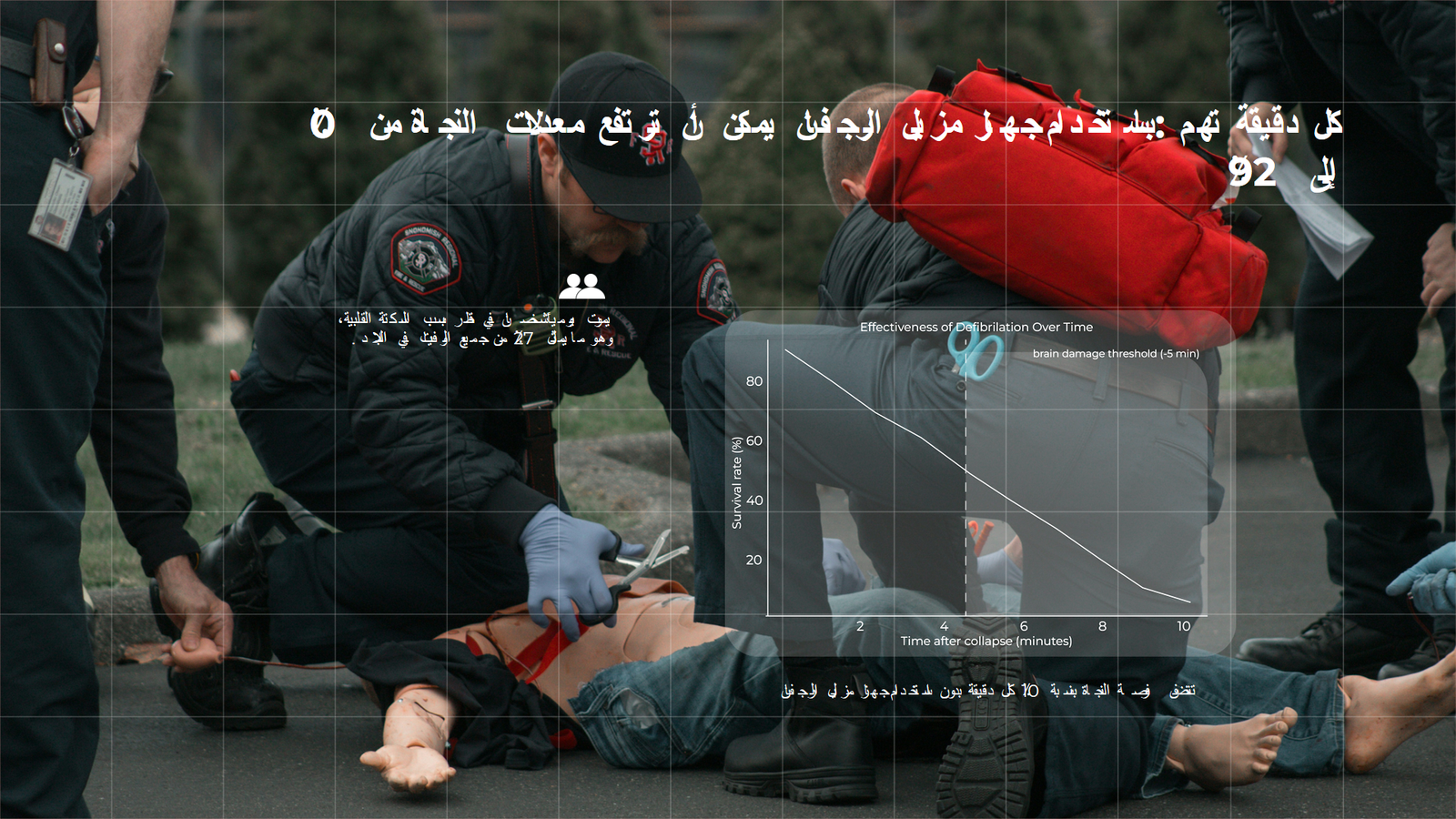 كل دقيقة مهمة: باستخدام جهاز إزالة الرجفان القلبي، قد ترتفع معدلات البقاء على قيد الحياة من 0% إلى 92%